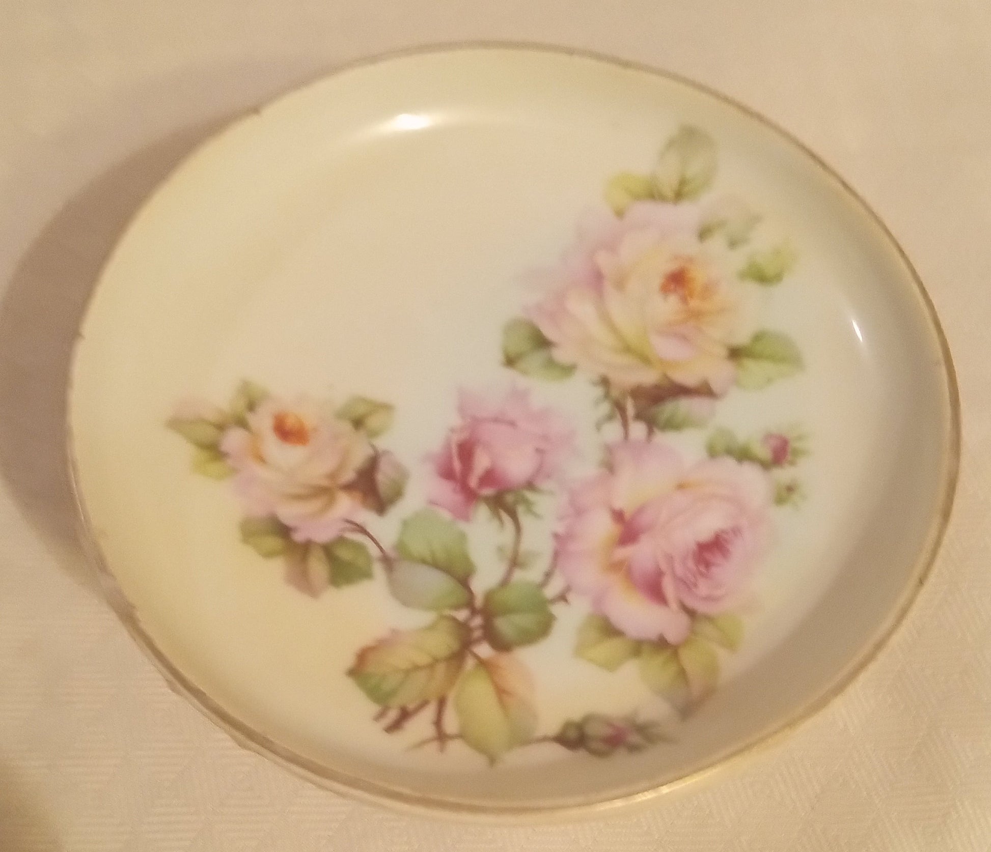 Antique Austrian Porcelain Pedestal Comport | Edwardian Pink Roses Gold Trim | Single Candy Dish, Near-Mint with Patina