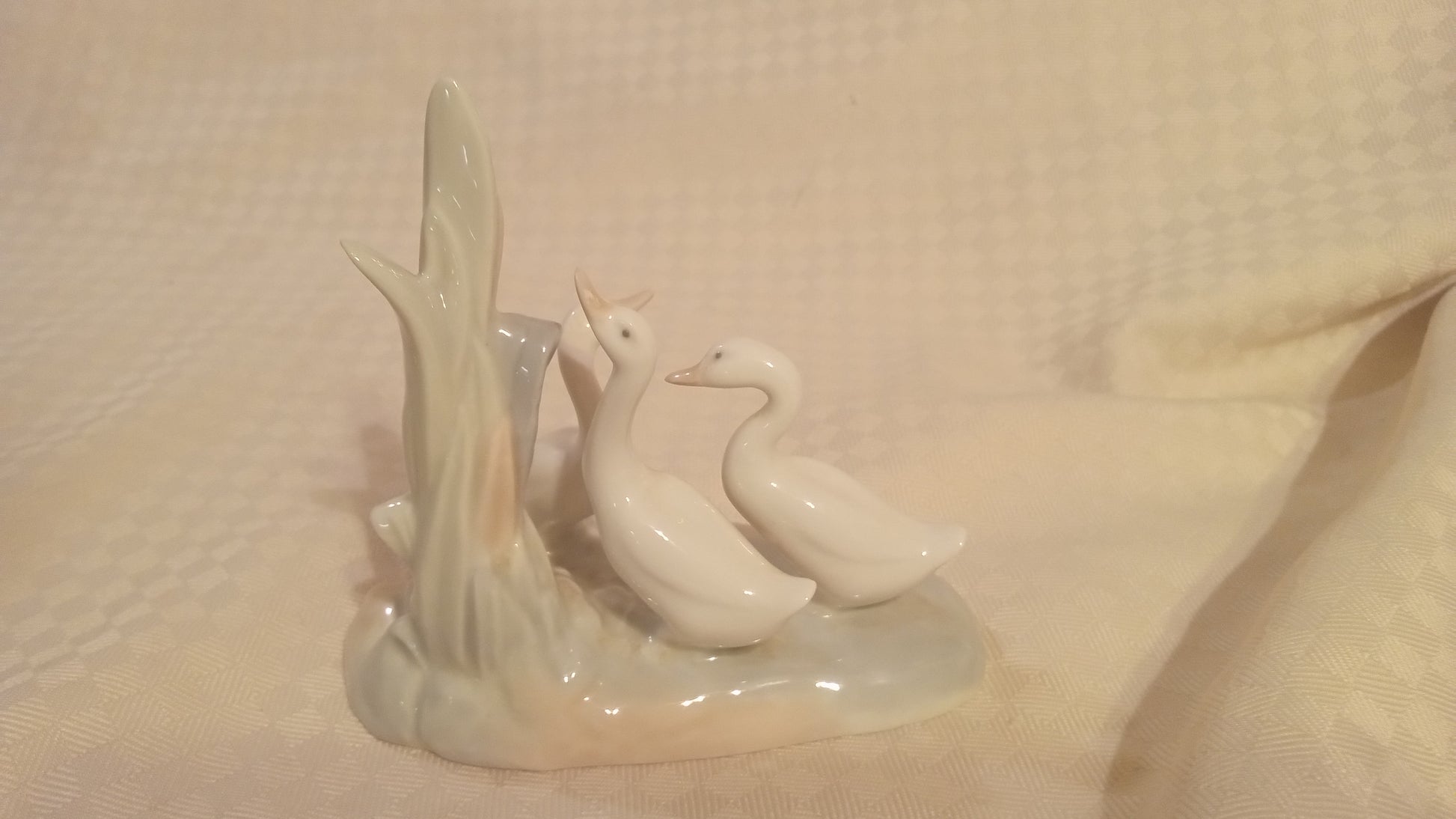 Bring a touch of timeless Spanish elegance and nature's quiet charm into your home with this exquisite NAO figurine, "Group of Ducks." Hand-crafted by the esteemed artisans of Lladro, this piece captures the tender moment of three ducks gathered at the water's edge, their glossy white porcelain finish radiating a beautiful, lifelike grace.