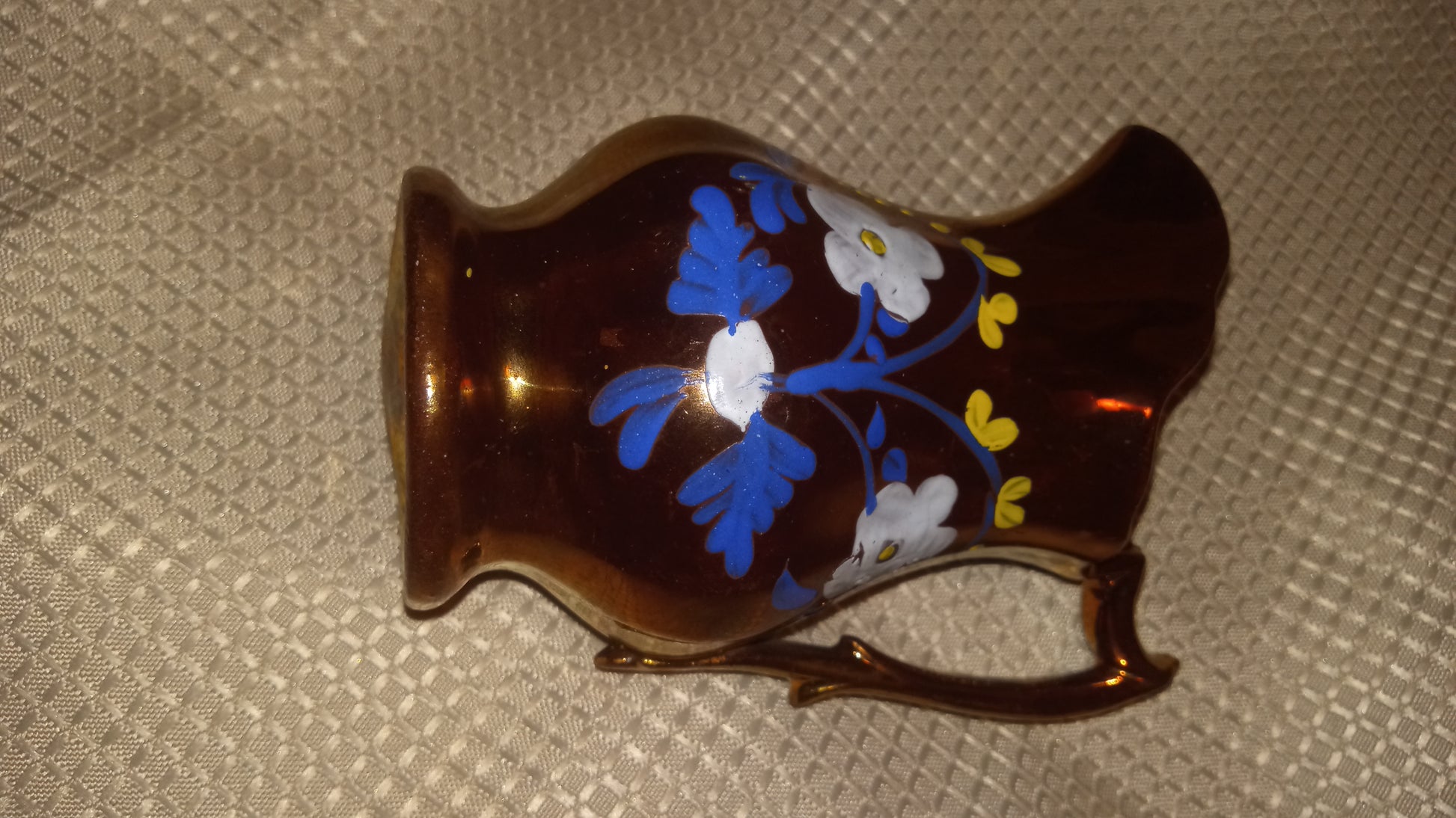 Vintage Japanese Lusterware Creamer - Hand Painted Floral Pitcher (4" Tall) - Copper Glaze Collectible